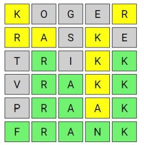 Kui üks "k" kahest on õige koha peal, jääb teine ikka kollaseks. See võib tähendada, et sõnas on ainult üks "k", mis on õigel kohal (roheline k) ja teist k-sid pole sõnas. See võib tähendada ka, et sõnas on kaks k-d, millest ühe asukoht on leitud (roheline) ja teine leidmata (kollane).